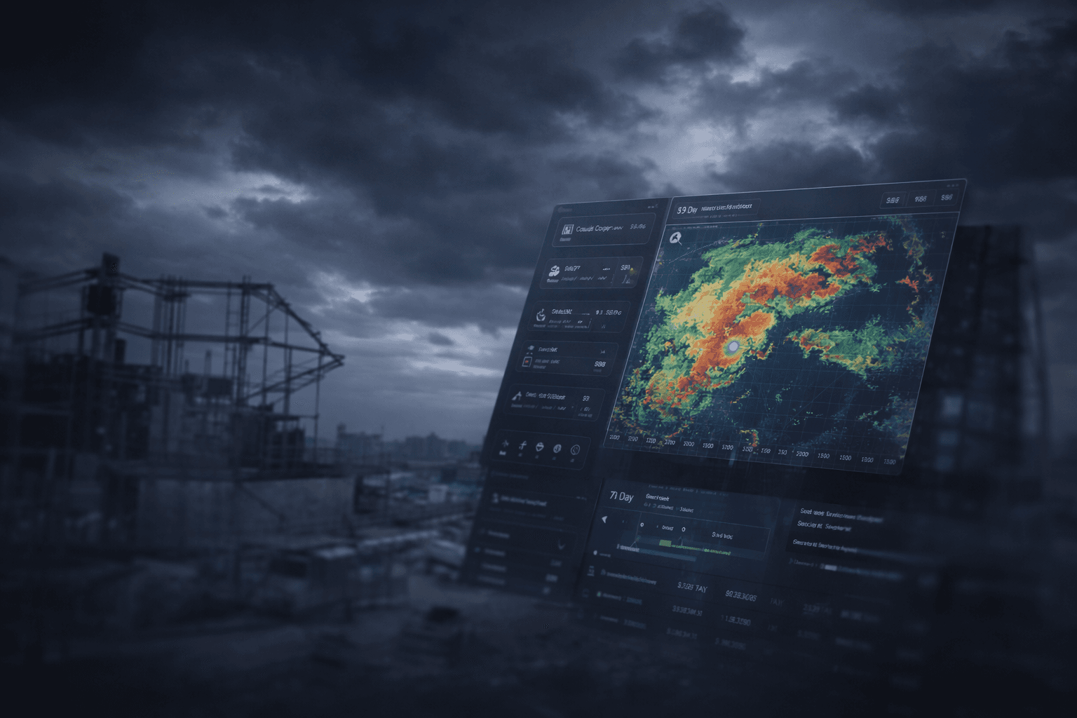 Real-time weather forecasting tied to active build sites.